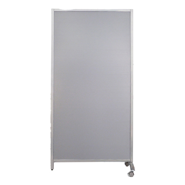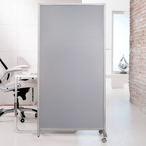Parete divisoria da ufficio colore grigio chiaro. Dotata di ruote e di pannello in policarbonato alveolare. Cornice in acciaio verniciato a polvere. Connettori magnetici per una rapida unione delle pareti, con possibilita' di rotazione fino a 90 gradi. Dimensione: l 80cm x p40cm - h170cm.