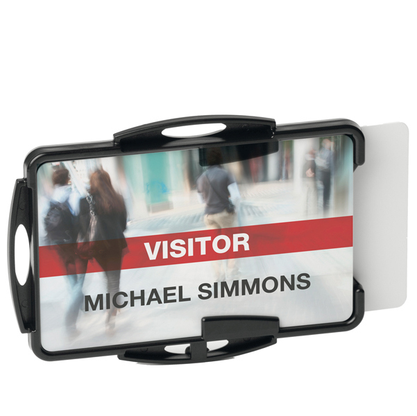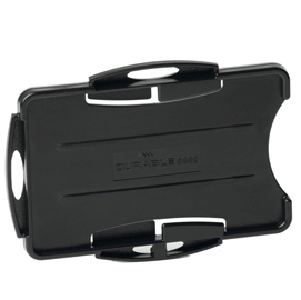 Portabadge ideale per 2 tessere. Realizzato in plastica riciclata certificata blue angel. Puo' essere utilizzato sia in formato orizzontale che verticale. Puo' essere utilizzato con catenella, cordoncino in tessuto o chiocciola yo-yo . Dimensioni interne 54x87mm. Prodotto ecosostenibile. Realizzati in plastica riciclata robusta. I portabadge sono ideali per un uso professionale, per la diffusione di un messaggio e per il consolidamento dell'identita' di un marchio. Efficaci contro sporcizia e umidita'. Altezza 54mm. Lunghezza 87mm. Colore nero. Visual e comunicazione. Portanome. Tipologia portabadge. Dimensione 5,4x8,7cm. Confezione da 10 pezzi. Marca Durable.