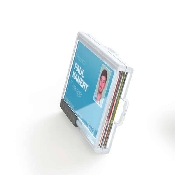 Elegante portabadge con comparti separati per contenere e proteggere fino a 2 tessere formato 54x87mm. Utilizzabile sia in posizione orizzontale sia verticale. Perfetto per proteggere tessere con chip RFID e con banda magnetica. Levette scorrevoli per una facile espulsione delle tessere. In plastica trasparente crystal-clear di alta qualita'.