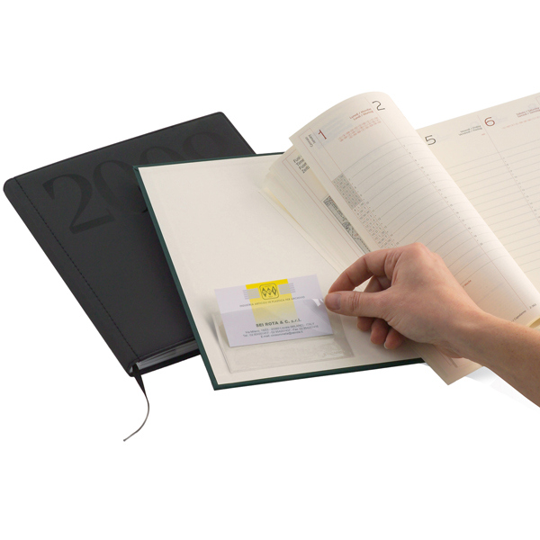 Porta biglietti autoadesivi trasparente realizzate in PVC. Formato utile 5,5x9cm.