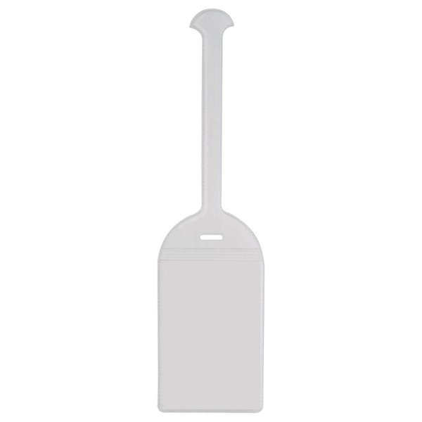 Aggancio resistente in plastica antigelo. Con cartellino in cartoncino.Una tasca.