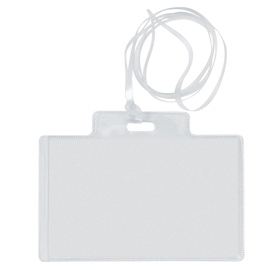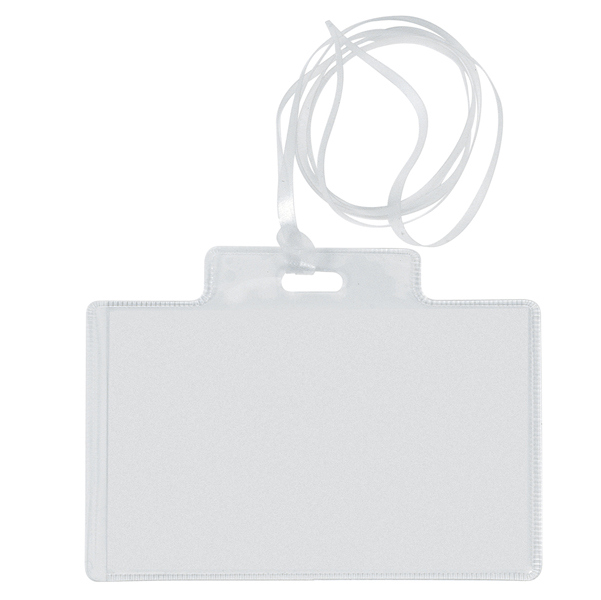 Porta nomi in pvc trasparente. Alto spessore. Completi di cordoncini in plastica e cartoncini. I cordoncini sono a norme di sicurezza anti soffocamento. Adatti a congressi, riunioni, visite guidate. Il cartoncino si inserisce dal lato corto. Formato 95x60mm. Colore trasparente. Materiale pvc. Tipologia portanome. Dimensione 9,5x6cm. Con cordoncino incluso. Confezione da 10 pezzi.