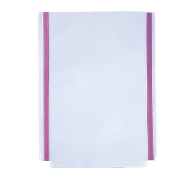 Tasche in PP buccia altissimo spessore con due strisce adesive sul retro. Contengono fino a 200 fogli. Applicabili su cartelle e raccoglitori e altri supporti lisci quali vetro e metallo. Formato utile 22x30cm.