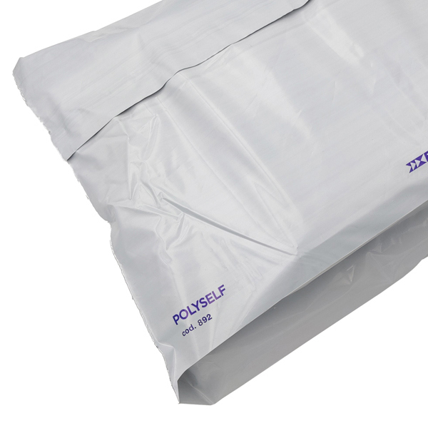 Sacco in polietilene riciclabile da 65 micron. Colore esterno bianco/interno grigio. Termosaldato su due lati. Lembo autoadesivo protetto da Strip Forte. Sacchetti ideali per i trasportatori e i corrieri.