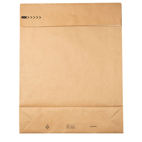 E-Green, sacchetti ideali per tutte le spedizioni di merci che non richiedono una scatola, o preimballate come articoli di abbigliamento, scarpe, accessori, cosmetica, elettronici e molto altro. Capiente come una scatola. Si espande e si adatta al contenuto. Ideale per conteuti voluminosi e squadrati. Apertura facilitata 'Tear Off'. Grazie alla doppia striscia adesiva, questo sacchetto puo' essere riutilizzato, ad esempio per il reso degli ordini on-line. Formato interno 400x500x100mm +100mm. Chiusura con 2 strip. Materiale Kraft. Colore avana. Gr/Mq: 125gr.