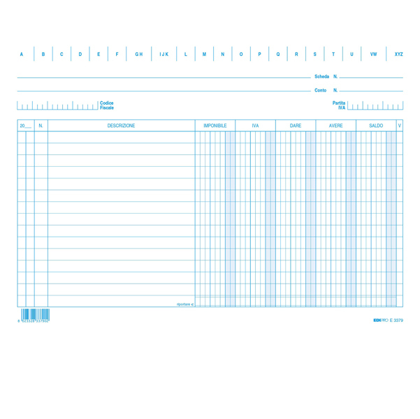 100 Schede Dare/Avere/Saldo/IVA 17x24cm Orizzontali E3379.