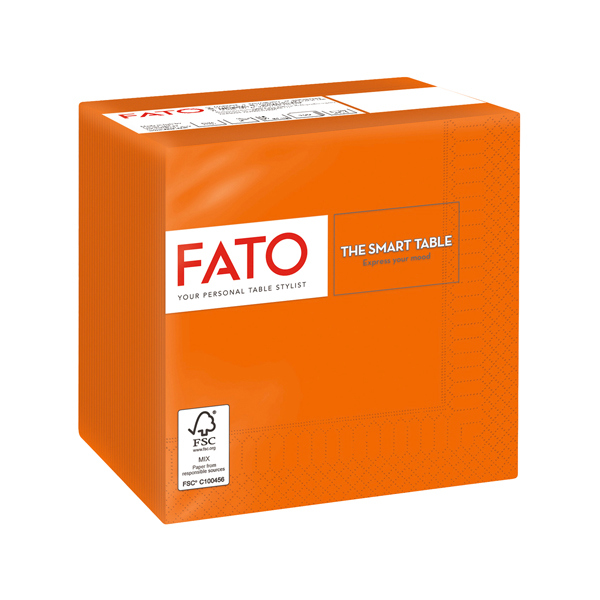 Confezione da 100 tovaglioli di carta 24x24cm. 2 Veli. Colore: arancio. Idoneo al contatto alimentare.