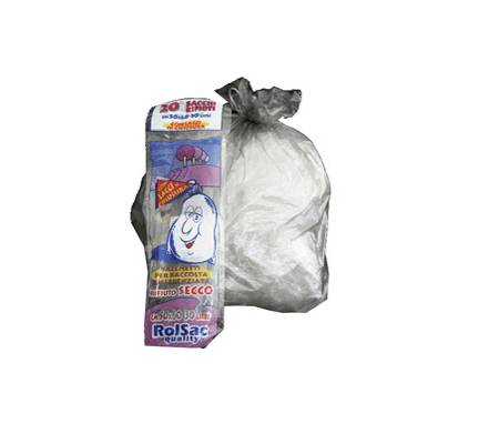 Sacchi pattumiera di coloregrigio trasparente in mdpe rigenerato + plt lineare. Formato 50x60cm 30lt 16 micron con lacci di chiusura. In rotolo da 20 sacchi. Prodotto con alta resistenza meccanica. Adatti per la raccolta differenziata.