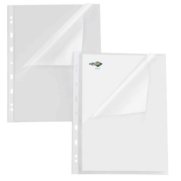 Buste con foratura universale rinforzata. Apertura laterale sul lato della foratura. In polipropilene a buccia d'arancia. Alto spessore. Formato 22x30. Colore trasparente. Materiale ppl. Tipologia cartelline in plastica con apertura laterale. Spessore pesante. Finitura buccia d'arancia. Confezione da 25 buste.