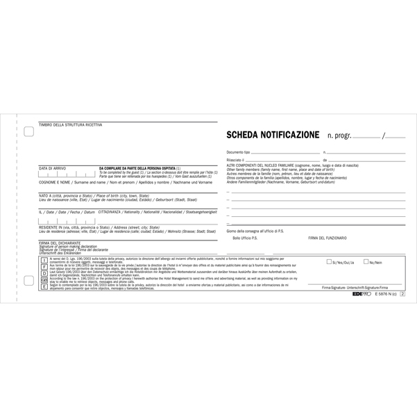 Schede di notifica. Formato 10x22cm. Snap. 2 copie ricalcanti.