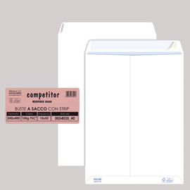 Busta a sacco bianca internografata 80gr. Con strip autoadesivo rimovibile.
