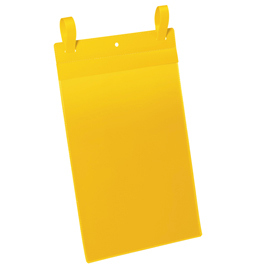 Tasche per identificazione con fascette di aggancio. Applicazione facile e sicura su grigliati metallici e contenitori per stoccaggio e trasporto. Robuste e resistenti all'usura e agli strappi, sono realizzate con retro in plastica colore blu e copertina frontale trasparente. Possono essere utilizzate anche in aree esterne in quanto dotate di aletta di chiusura che protegge i documenti dagli agenti atmosferici, sporco e umidita'. Adatte all'uso con scanner. Facile sostituzione dell'inserto. Formato utile (lxh) 210x297mm (A4 verticale). Formato esterno (lxh) 223x530mm.