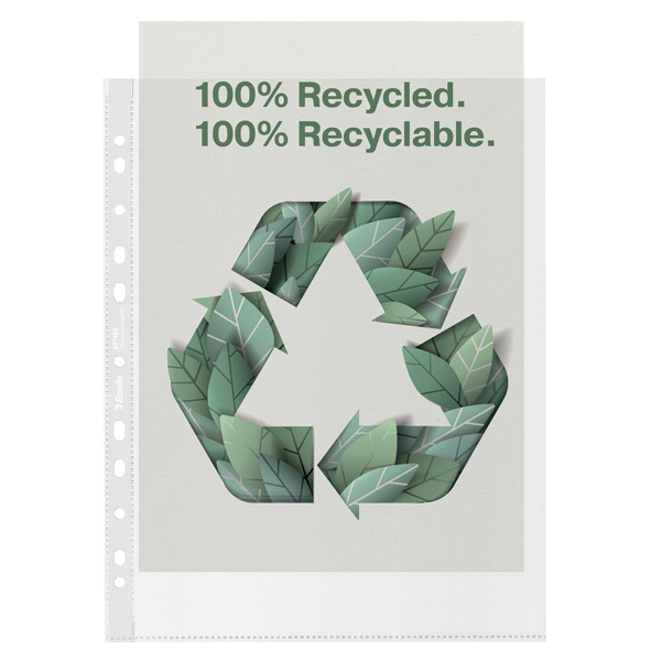 Buste a perforazione universale antiriflesso copy safe in polipropilene riciclato e riciclabile al 100% contenuto riciclato certificato da ul. Il materiale privo di acidi impedisce che la carta ingiallisca nel tempo. Perfetta per l'archiviazione a lunga durata.