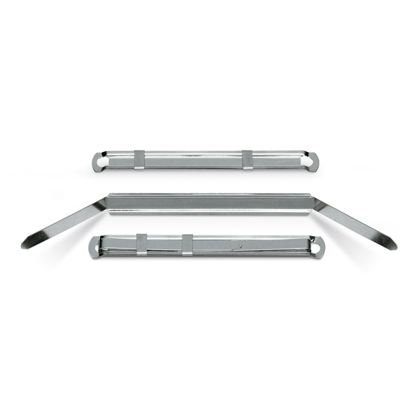 Pressino con linguette completamente in metallo. Fermafogli. Archiviazione. Scatola 50 pressini. Dimensioni 12x80mm. Colore argento. Materiale metallo. Confezione da 50 pezzi.