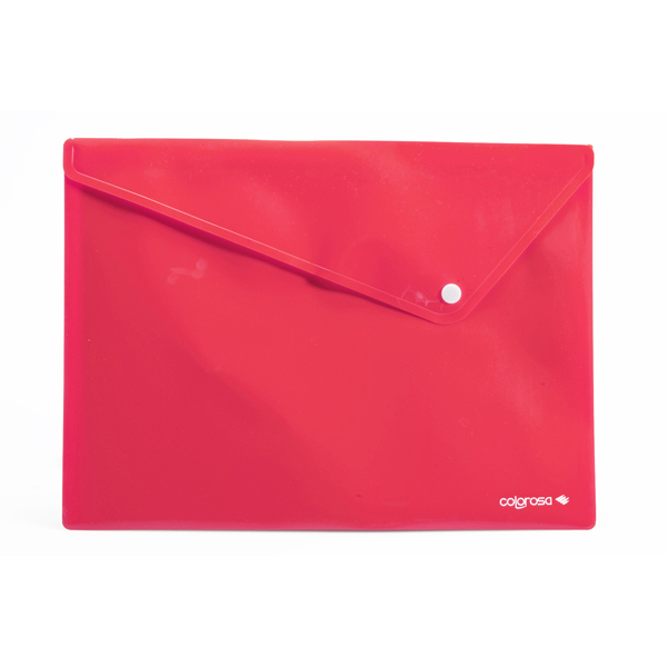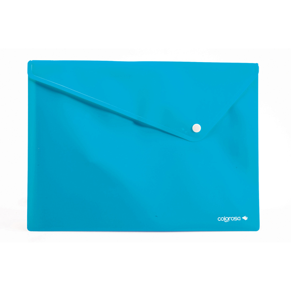 Buste orizzontali in PP con chiusura a bottone e angoli arrotondati. 6 colori assortiti.