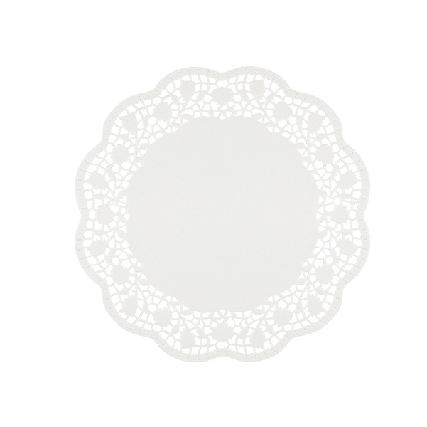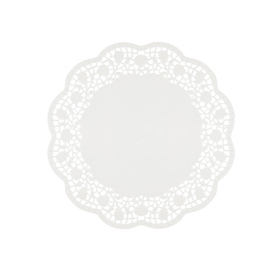 Confezione da 6 sottotorta decorativi, in carta bianca. Diametro: 27cm.