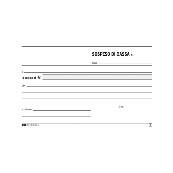 Blocco sospeso di cassa. Formato 10x17cm. 50 fogli. 2 copie ricalcanti.