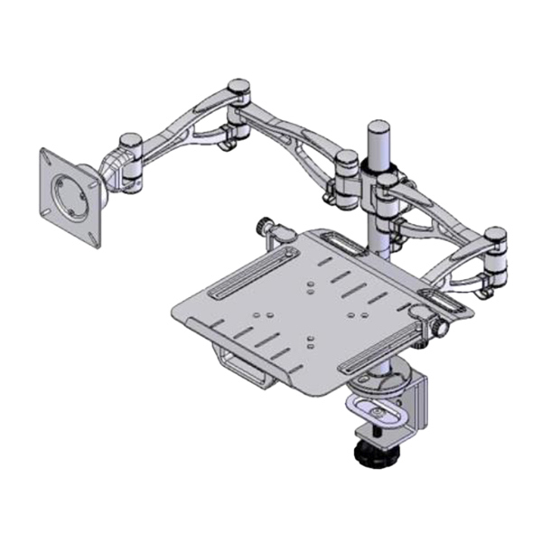Piattaforma laptop in acciaio e ABS, inclinazione completamente regolabile. Le staffe regolabili permettono di alloggiare un laptop di spessore tra 14 a 29mm e larghezza tra 25,8 e 37,5 cm. La piattaforma deve essere montata sul Braccio monitor singolo cod. 77590 o doppio cod. 77591 con apposito connettore. Maniglia ergonomica per spostare agevolmente la piattaforma. Dimensioni: 8,5 x 33 x 32cm. Peso: 2.3kg.