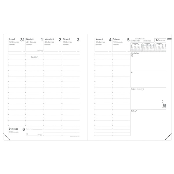Agenda settimanale con griglie speciali per gli insegnanti stampate su carta bianca certificata PEFC. Griglia settimanale 12 mesi da agosto a luglio (2 settimane su due pagine per una grande visibilita'. Registro per 9 classi con planning annuale, organizzazione del tempo, consigli di classe e dei professori e calendario delle vacanze scolastiche.