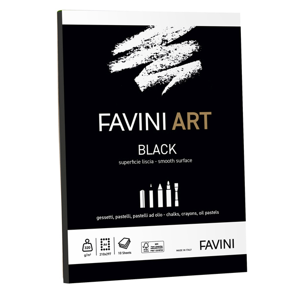 Album di carta nera adatto a gessetti, pastelli a cera o olio, tempere bianche, pennarelli acrilici e penne a gel. L'intensita' del colore nero sulla superficie liscia naturale fara' risaltare ancor di piu' i lavori.