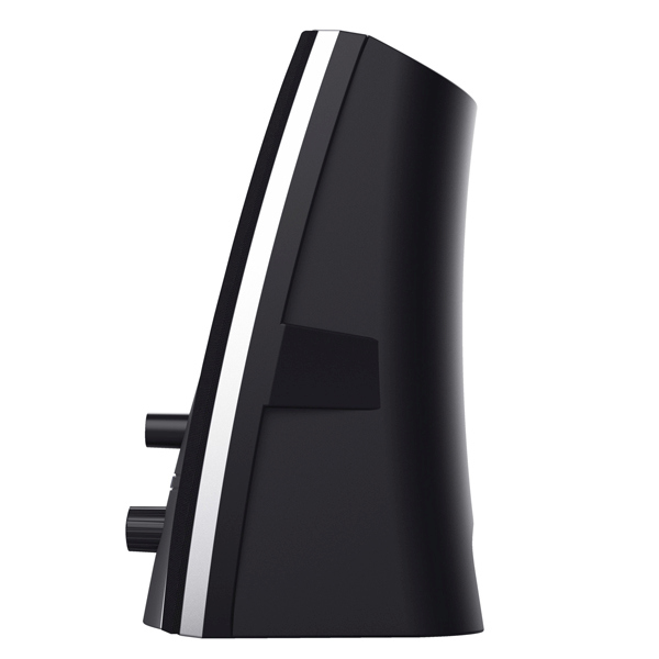 Comandi per l'accensione e la regolazione del volume,connettore per cuffie. Alimentazione USB.
