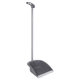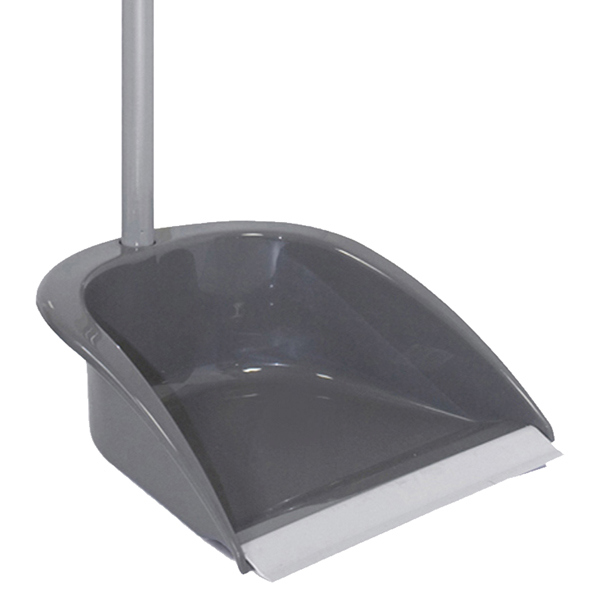 Alzaimmondizie in plastica con manico in metallo e filo in gomma.
