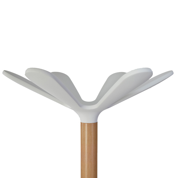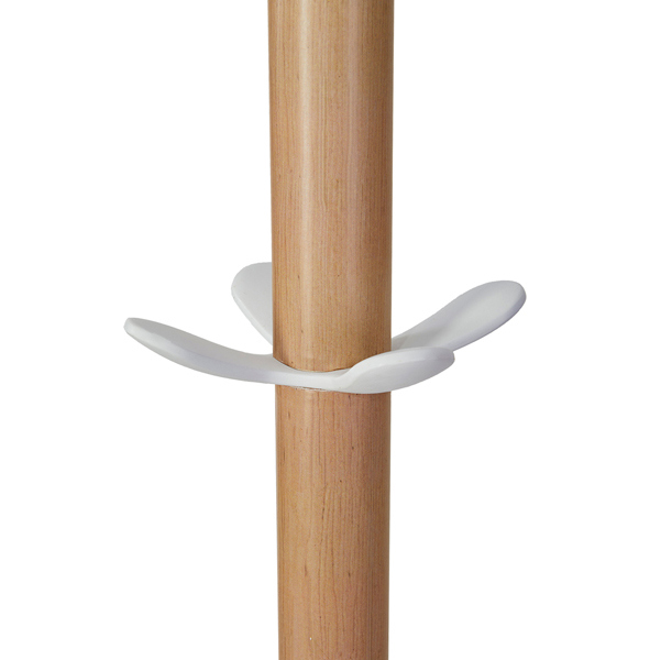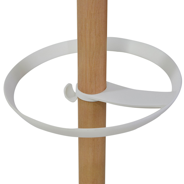 Appendiabiti elegante in legno chiaro e ABS con base appesantita raccogli gocce. Dotato di 6 supporti abito in ABS + 4 mini supporti per gli accessori e portaombrelli. Dimensioni: base diametro 35 - altezza 175cm. Tubo : diametro 38mm.