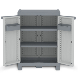 Armadio a 2 ante con 2 ripiani regolabili e 2 vaschette. Possibilità di chiusura con lucchetto ( non incluso). Dimensioni 70x43,8x97,6 cm.