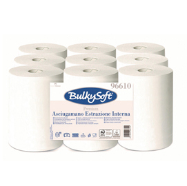 Asciugamano ad estrazione interna in cellulosa 100%. Microgoffrata a 2 veli da 19g. Altezza rotolo 21,5cm - Diametro rotolo 13cm - Lunghezza carta 60m (200 strappi da 21,5X30cm). Dati tecnici: Materia prima: pura cellulosa Idoneita' al contatto alimentare: Si' Colore: Bianco Goffratura: Micro Veli: 2 Grammatura (g/m2): 19 Estrazione interna: Si' Lunghezza Rotolo : 60mt Diametro: 13cm Diametro anima: 5cm Numero strappi: 200 Altezza strappo: 21,5cm Lunghezza strappo: 30cm Confezione da 9 rotoli. diametro 13 cm - 21,5 cm x 60 mt.