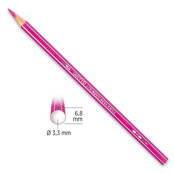 Pastello a sezione esagonale 6,8mm, verniciato nel colore della mina con spigoli argentati e bottone argento. Lunghezza 18cm. Mina acquerellabile 3,3 mm. Colori ricchi ed intesi che si acquerellano perfettamente e con facilita' al contatto con l'acqua. Disponibile in 36 colori.