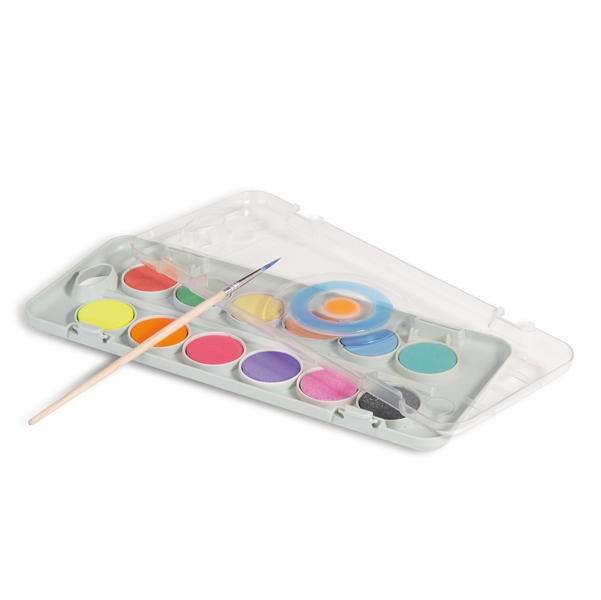Pastiglie acquerello fluo e metallizzato ottenute comprimendo polveri ad alto contenuto di pigmento, di qualita' speciale, in scatola in plastica da 12 colori, con pratico coperchio tavolozza e pennello. Diluite con poca acqua permettono di ottenere stesure coprenti e brillanti. Utilizzabile per la tecnica classica su fogli di carta o cartoncino da acquerello e per tecniche particolari anche su supporti diversi. Compatibile con gli altri prodotti ad acqua delle linee Morocolor. Rimuovere subito le macchie.