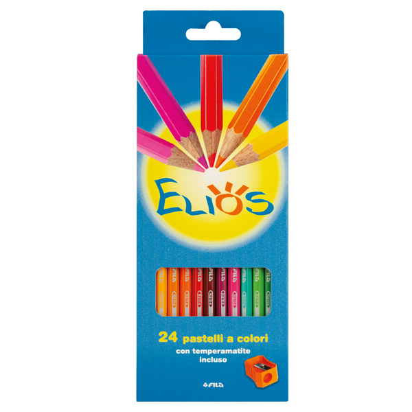 Pastello esagonale lunghezza 18cm, verniciato nel colore della mina. Astuccio in cartone. Mina 3mm. Temperamatite incluso nella confezione.