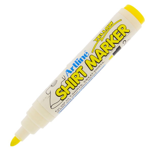Marcatore permanente specifico per t-shirt,tessuti in cotone, traspiranti,jeans. Resistente all'acqua e al lavaggio in lavatrice. Fissaggio con ferro da stiro. Non scolorisce. Fusto in plastica, punta in fibra poliestere da 2mm. Senza xylene. Astuccio di 4 colori assortiti: nero, blu, rosso e giallo.