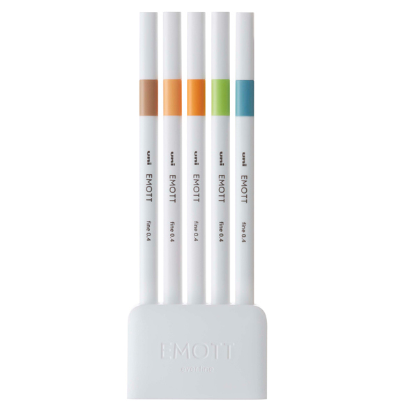 Fineliner con inchiostro a base acqua, dal design innovativo. Punta dotata di un rivestimento esterno che conferisce massima resistenza e lunga durata mantenendo inalterato lo spessore sottile del tratto. Astuccio 5 fineliner in colori assortiti beige, arancione chiaro, arancio, verde chiaro, blu sassonia.