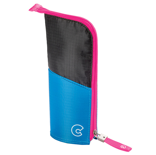 Pratico astuccio scuola con una Zip. Dotato di un ampio spazio e di una taschina. Una volta aperto, l'astuccio pio' rimanere in piedi diventando un portapenne. 4 versioni fluo assortite: Verde/Arancio-Blu/Fucsia-Blu/Nero-Arancio/Blu. Dimensioni: 9x19x4cm.