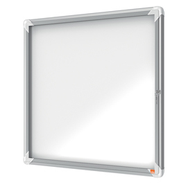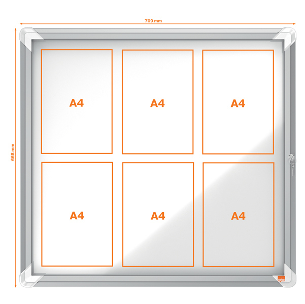 Ad anta battente. Moderna, sicura e resistente all'umidita'. Robusta cornice in alluminio e vetro di sicurezza da 4mm. Fondo in acciaio bianco magnetico e scrivibile con pennarelli a secco. Fissaggio semplice effettuabile da una sola persona. Serratura con 2 chiavi. Dimensioni esterne: 70,9 x 66,8cm Dimensioni interne: 65 x 70,9cm.