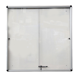 Bacheca Starline per interni in alluminio con fondo magnetico ad ante scorrevoli. Ante in policarbonato trasparente. Formato: 12xA4 VERTICALE. Formato esterno: 1000X1000X45mm.