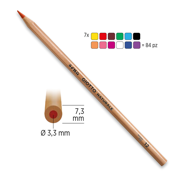 Pastello tondo lunghezza 18cm, legno naturale verniciato trasparente opaco. Astuccio in cartone. Mina 3,3mm.