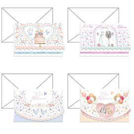 Biglietti doppi formato 11,7x17cm. Stampa offset su cartoncino liscio bianco . Blisterati 1 busta/1 biglietto.