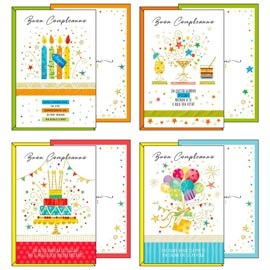 Biglietti doppi formato 11,7x17cm. Stampa offset su cartoncino liscio bianco. Blisterati 1 busta con 1 biglietto. con rifiniture dorate.