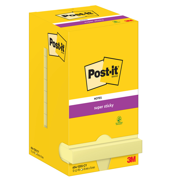 Blocchetti da 90 foglietti riposizionabili colore Giallo Canary 654-12SS-CY Post-It. Grazie all'adesivo rinforzato si attaccano praticamente su tutte le superfici e non lasciano traccia. Adesivi riposizionabili. Ideali per superfici difficili o verticali. Colore Giallo canary. Formato 76x76mm. Lunghezza: 76mm. Altezza: 76mm. Grammatura 74gr. Linea Super sticky. Carta certificata al 100% PEFC. Ogni blocchetto contiene 90 foglietti. Vendita di 12 blocchetti gialli. Codice produttore 7100290155. Marca Post-it 3M.