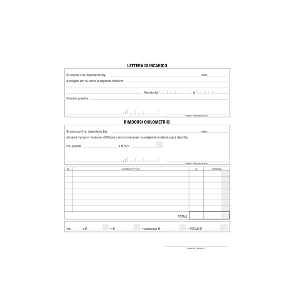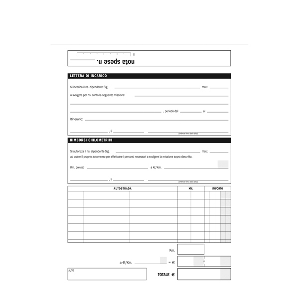 Blocco 25 buste staccabili NOTA SPESE, Formato 23x16cm.