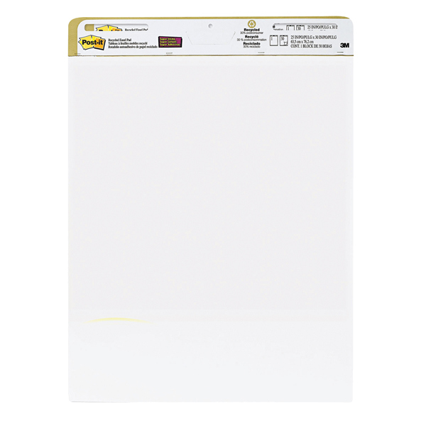 Blocco 30fg bianchi in carta riciclata al 30%. Blocchi da parete con adesivo rimovibile super sticky che aderisce preticamente ovunque (parete, porte, armadi). L'intero blocco puo' essere appeso al muro con adesivi 3M command all'interno della confezione.