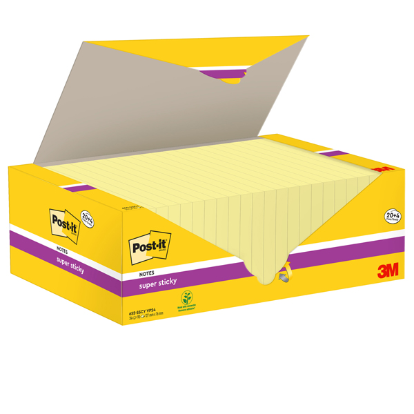 Valuepack 20+4 blocchi foglietti Post-it Super Sticky, 90fogli 76x127mm giallo Canary. 90 fogli.
