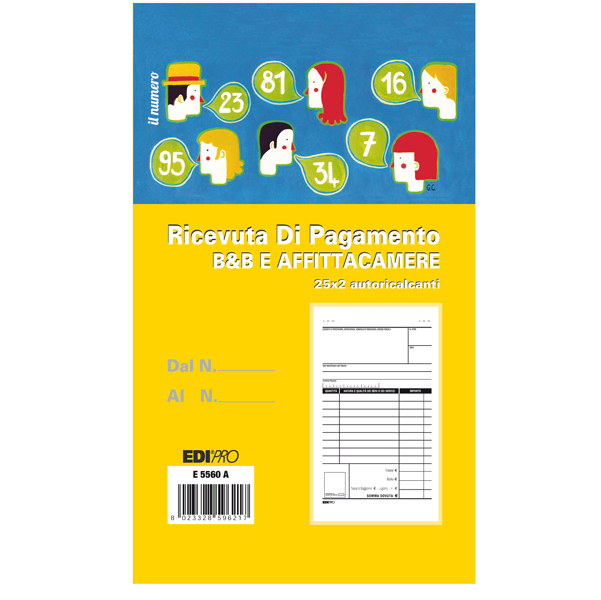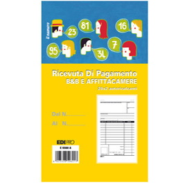 Blocco Ricevuta BeB Affitta camere 25x2 autoricalcante. Formato 17x9,9cm.
