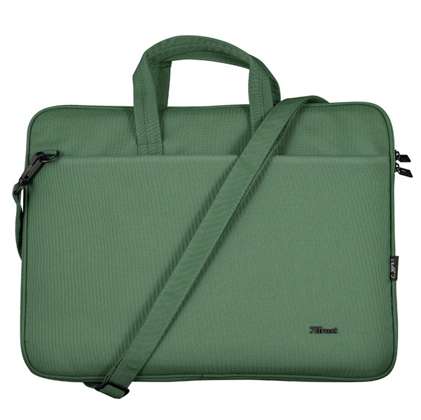Sottile borsa per laptop ecocompatibile, per laptop da 16 pollici per semplificare la routine quotidiana, tenere tutto al sicuro, in ordine e a portata di mano. Il design con caricamento dall'alto permette di accedere facilmente allo scomparto principaleideato proprio per laptop fino a 16'' (26 x 37 cm). Questo scomparto e' interamente imbottito con morbidissima imbottitura in microfibra, che grantisce la protezione del laptop dai graffi all'interno e dagli urti all'esterno; per gli altri oggetti personali c'e' invece lo scomparto separato anteriore con chiusura a cerniera. Il tessuto eco-compatibile della borsa e' stato ottenuto riciclando 11 bottiglie in PET. Pratica e leggera, puo' essere tenuta dalla maniglia o dalla tracolla removibile e regolabile.