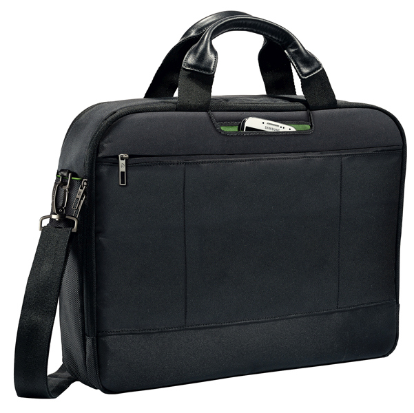 Borsa business leggera con due scomparti principali e uno scomparto anteriore piu' piccolo. Design elegante e distintivo con chiusura a zip intelligente ed eleganti fibbie in metallo opaco. Maniglie imbottite in vera pelle, tracolla regolabile o fascia di fissaggio al trolley. 18 tasche tra cui una tasca anteriore per un rapido accesso a mini tablet o lettore ebook. Tasca rimovibile separata per adattatore e cavi.