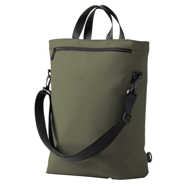 Borsa zainabile realizzata con materiale gommato resistente all'acqua e idrorepellente. Dotata di grande vano centrale e tasca frontale con zip. Chiusura superiore con zip. Tracolla removibile e tracolle zaino nascoste.