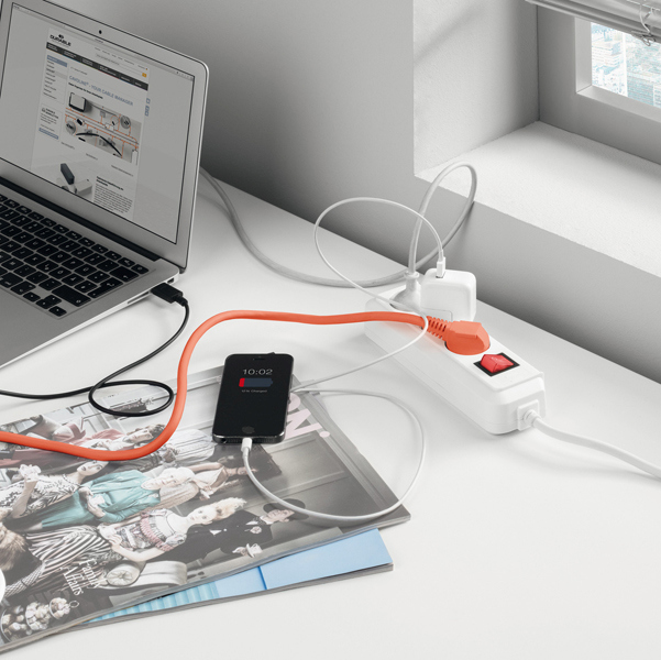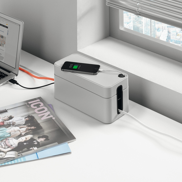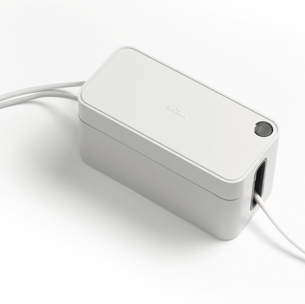 Scatola per nascondere cavi e multi prese da 3 entrate, realizzata in plastica ignifuga di alta qualita'. Studiata per una gestione ordinata dei cavi, e' dotata di fessure laterali che ne consentono il passaggio, inoltre facilitano la circolazione ottimale dell'aria. Il coperchio ha un'apertura passacavi circolare richiudibile ideale per cavi di ricarica dei telefoni cellulari. 5035-1 0.