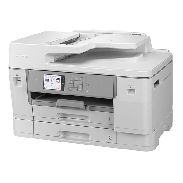 La multifunzione offre stampa, scansione, copia e fax A3 di qualita' superiore in un unico dispositivo a getto d'inchiostro. La piu' recente tecnologia delle testine di stampa offre velocita' di stampa elevate, garantendo stampe durature e di qualita' superiore. Stampante multifunzione inkjet A3 professionale con wireless e stampa a colori di alta qualita'. Progettato per gli uffici piu' esigenti. - Velocita' di stampa fino a 30 ipm - Stampa, scansione, copia e fax A3 su 2 lati automatici - Touchscreen a colori da 8,8cm - NFC (Near-Field Communication) per autenticazione sicura, stampa e scansione mobile - 2 vassoi carta da 250 fogli - Inchiostri opzionali ad alta resa che stampano fino a 6000 pagine in bianco e nero e 5000 pagine a colori.